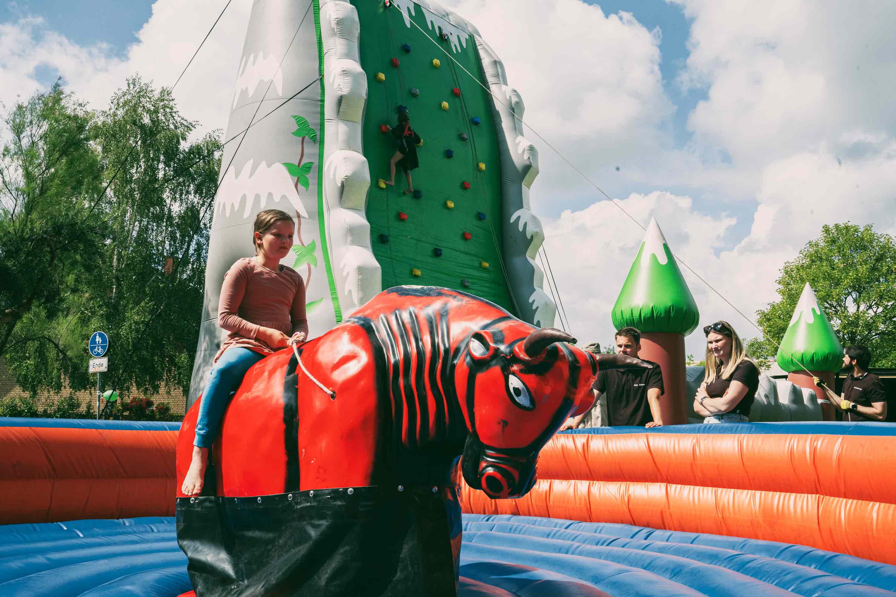 Auch drumherum gab es zahlreiche Attraktionen: bunte Hüpfburgen, Bullriding, ein Kletterberg, ein Indoor-Spielplatz, Kinderschminken, Basteln, eine Spielecke für die Minis und eine Tombola mit kostenfreien Losen. Ein Tag, an dem sich die Kinder einmal richtig austoben konnten. Und die waren hellauf begeistert. Mit leuchtenden Augen erzählt Jolina, dass sie gerade auf dem großen Trampolin war und ziemlich hoch gesprungen ist. Oskar fand die Zuckerwatte am besten und naschte diese genüsslich vor dem Knusperhäuschen. Die kleine Fiona war wie andere Kinder ganz begeistert von den vielen bunten Hüpfburgen und Janosch fand einfach alles gut.